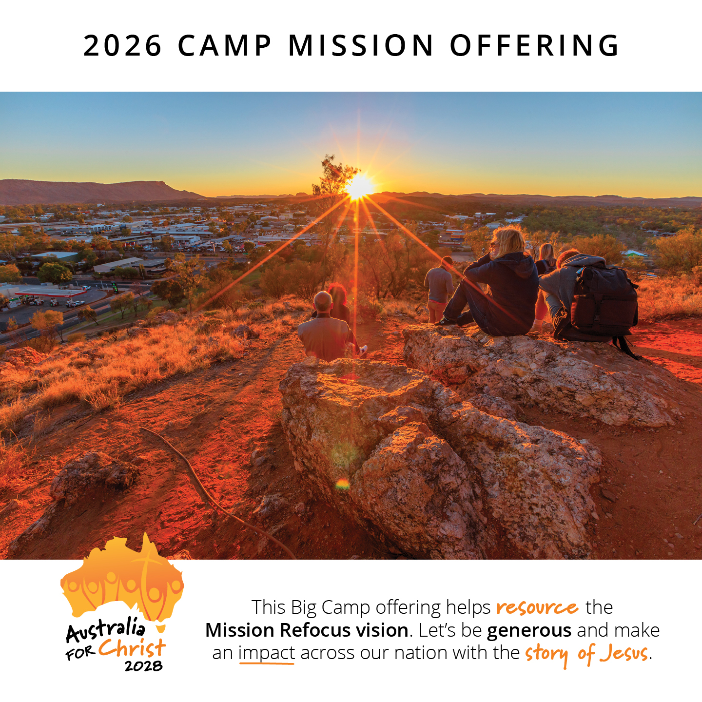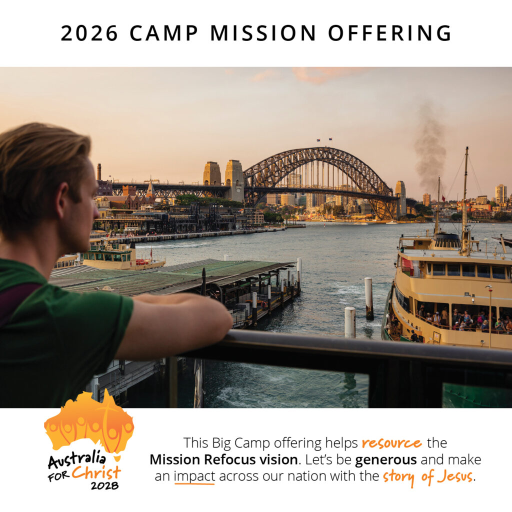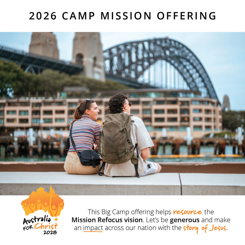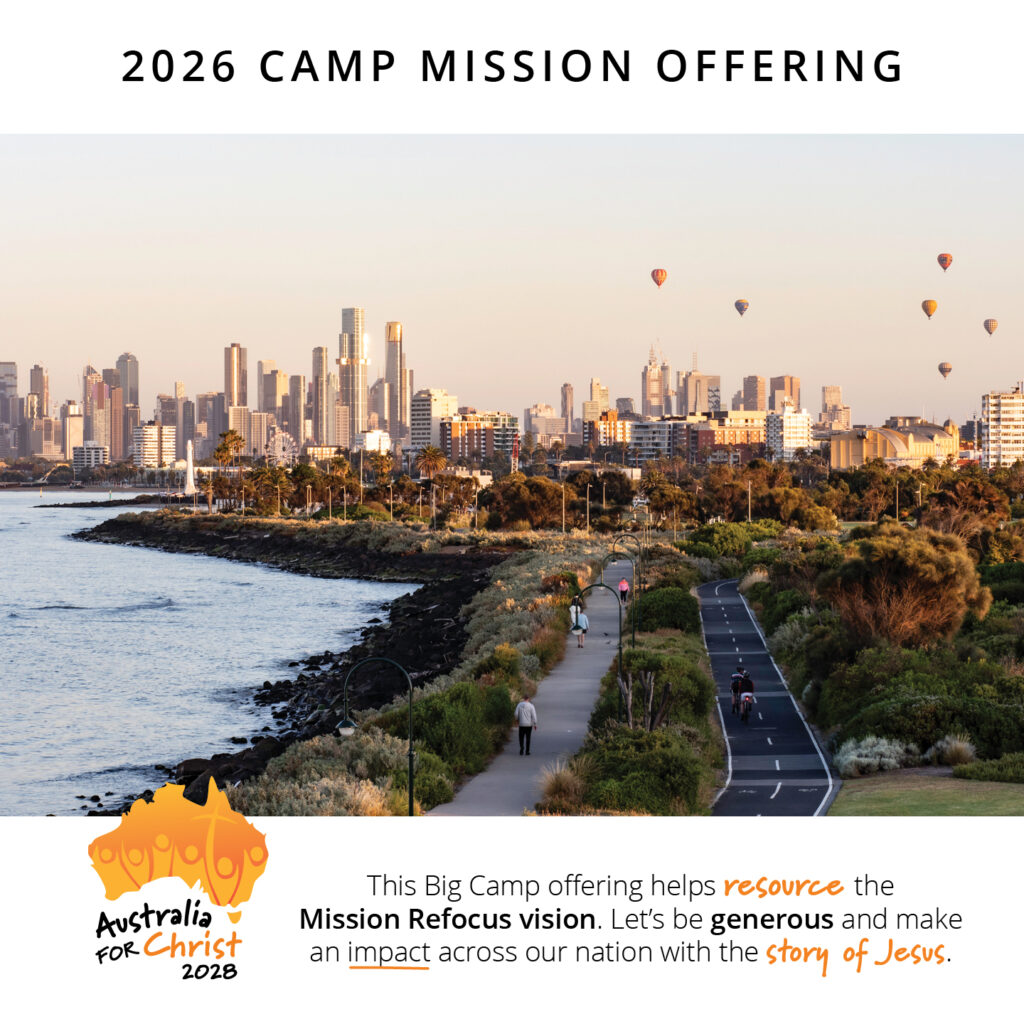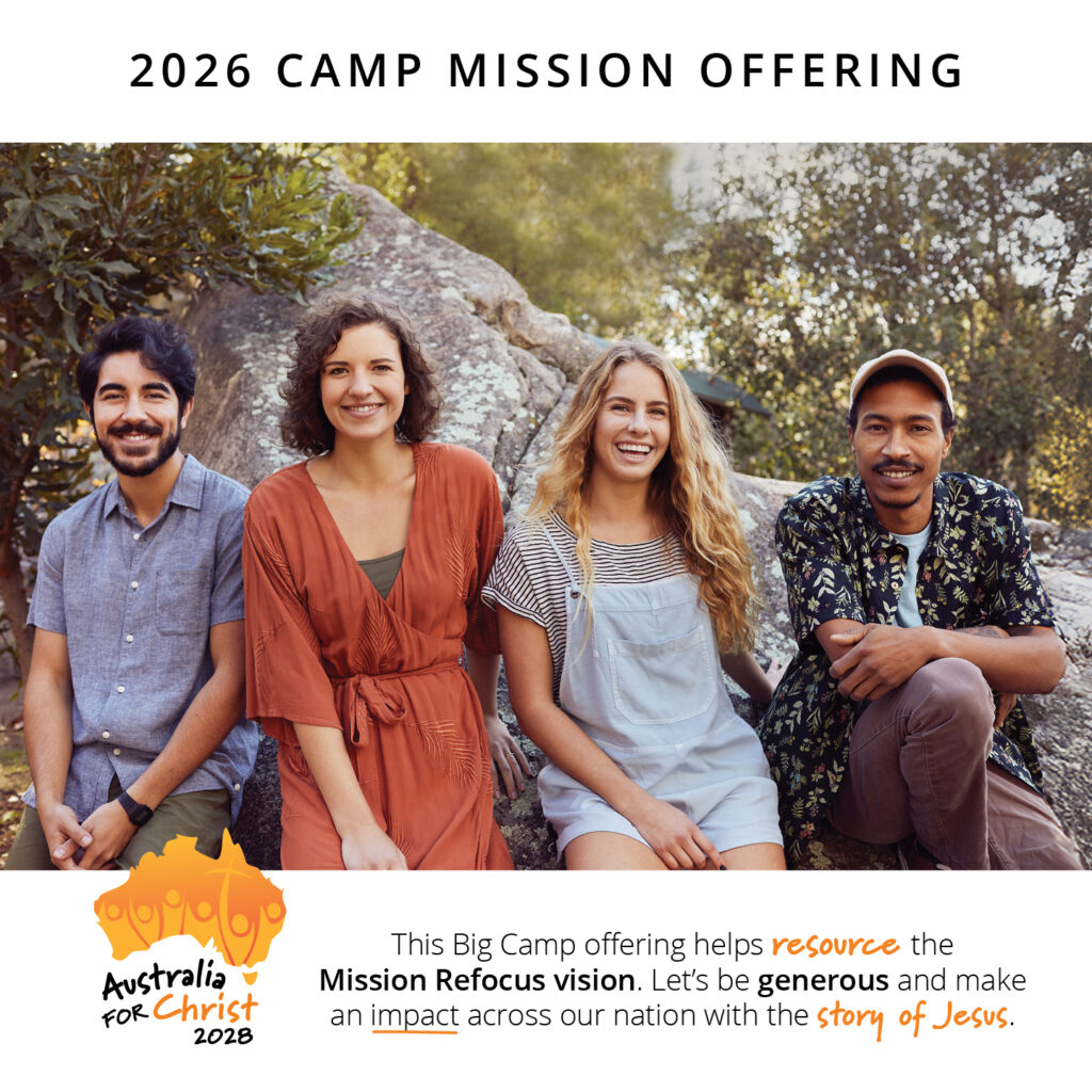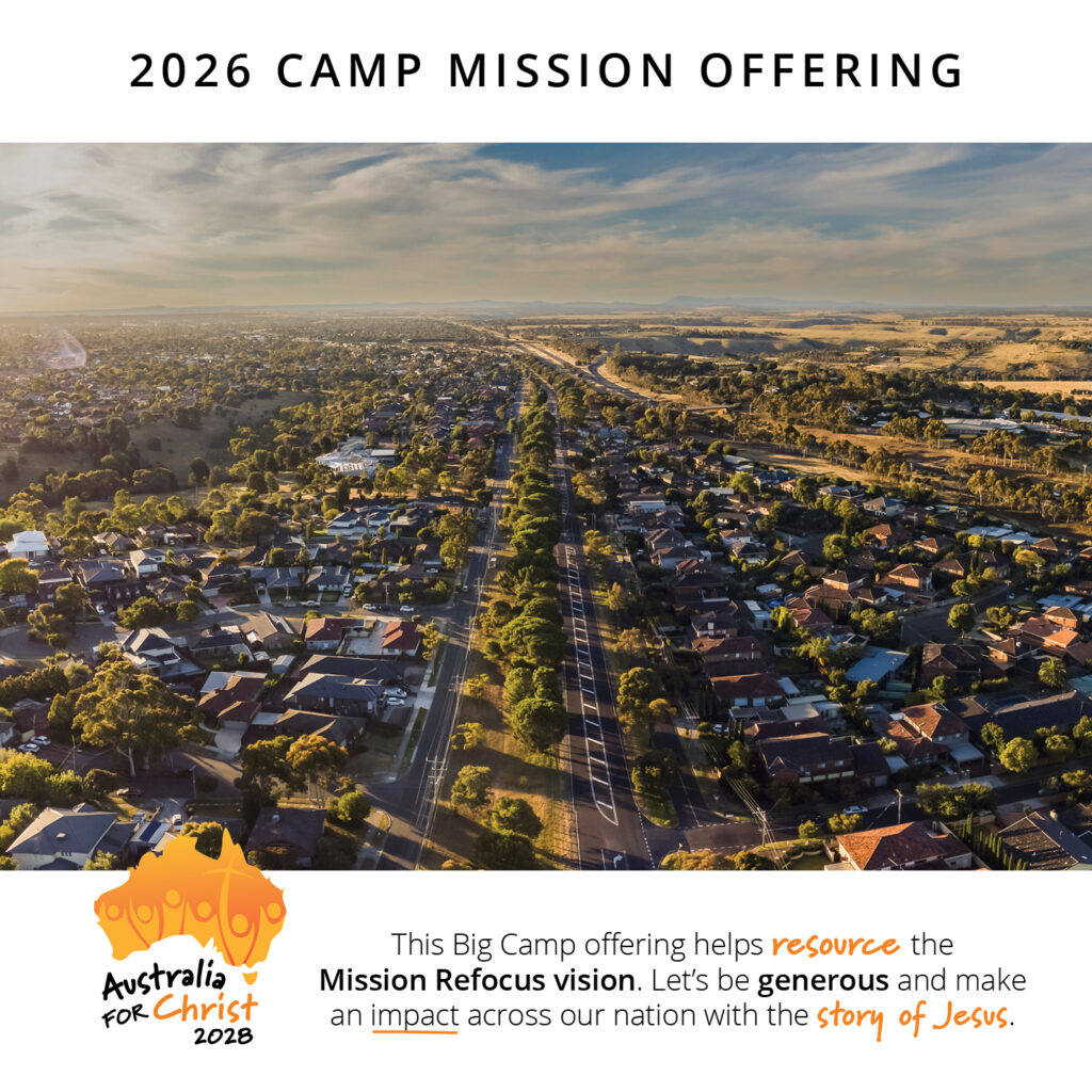 The 2026 Camp Mission Offering will be used to powerfully take the gospel of Jesus Christ to everyday Australians. Australia for Christ 2028 is the recipient of this year’s offering, and it is shaping up to be the most powerful, Christ-centred, mission outreach ever undertaken in this nation. Please give generously, and sacrificially, as we work together lift up Jesus across Australia.